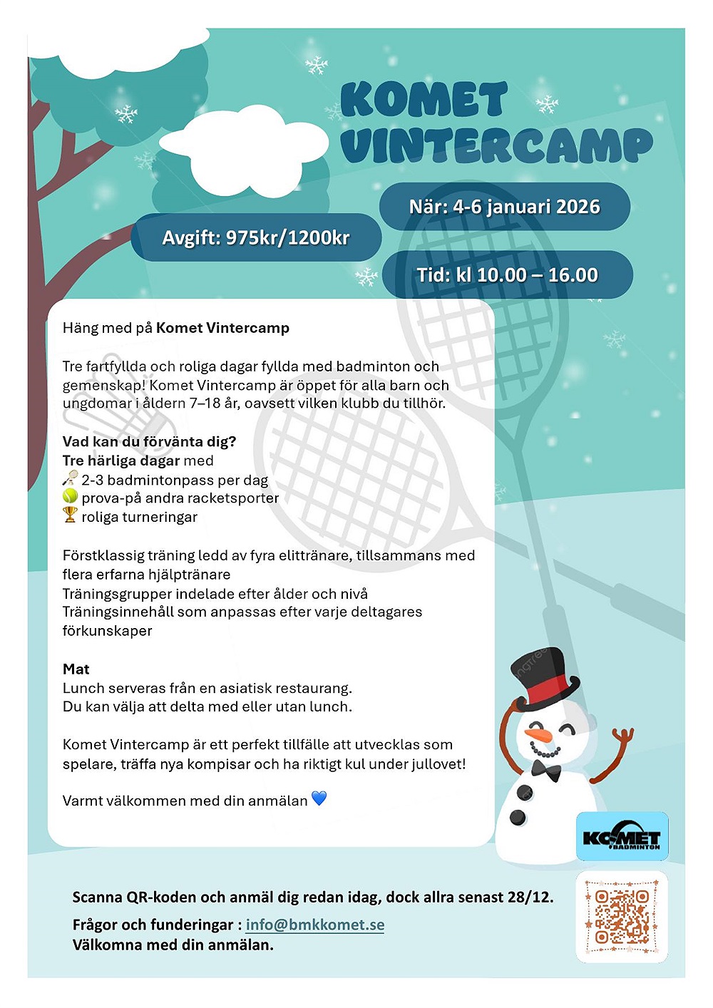 - Inbjudan till Komet Vintercamp 4-6 januari 2026.